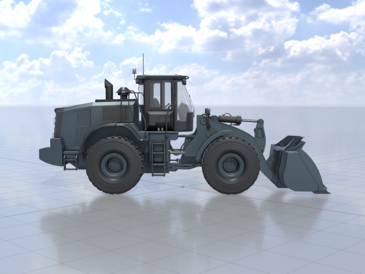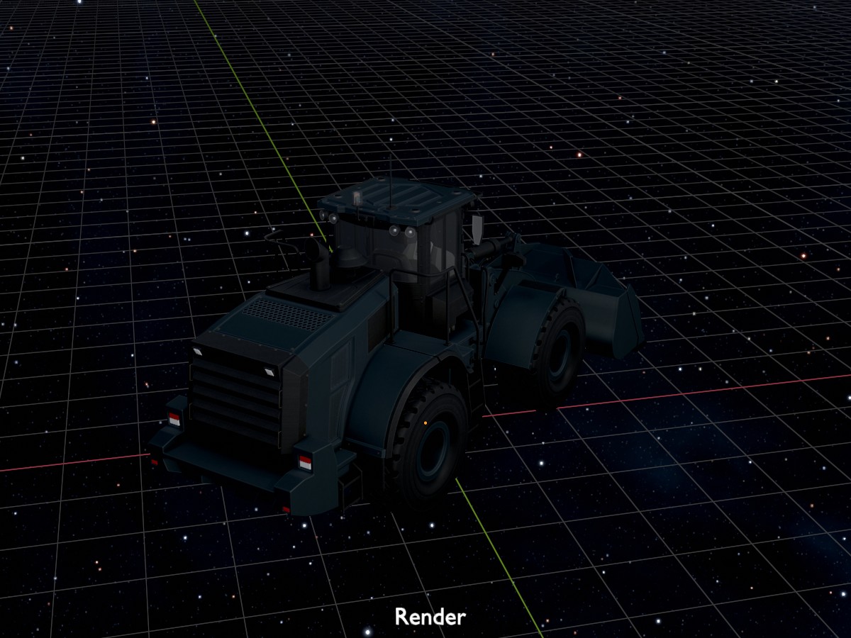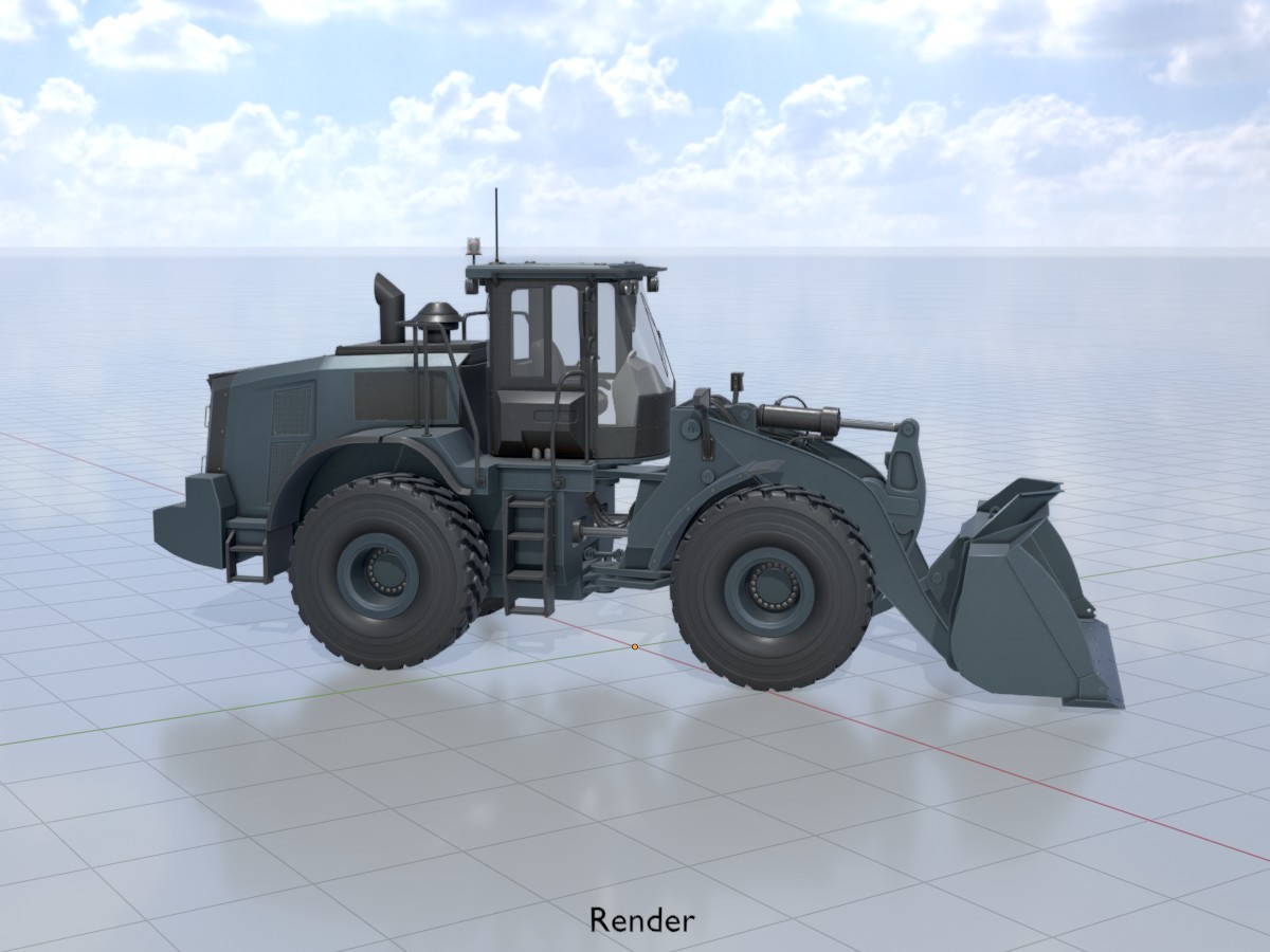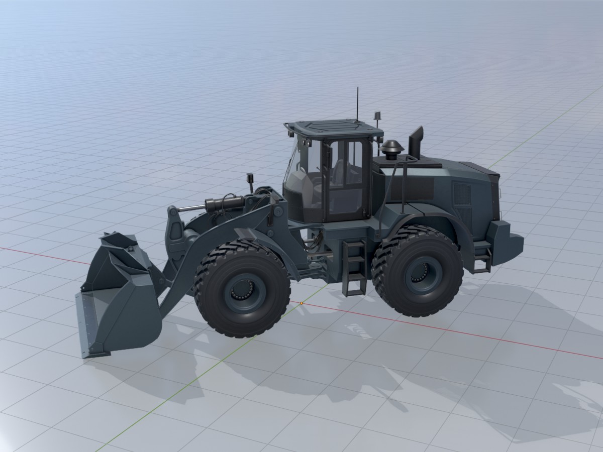 Ein 3D-Modell eines Baustellenfahrzeugs vom Typ Radlader (Frontlader).