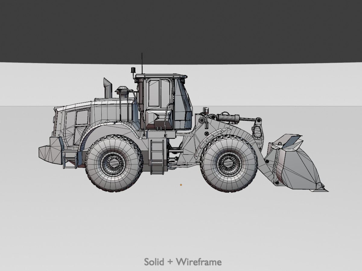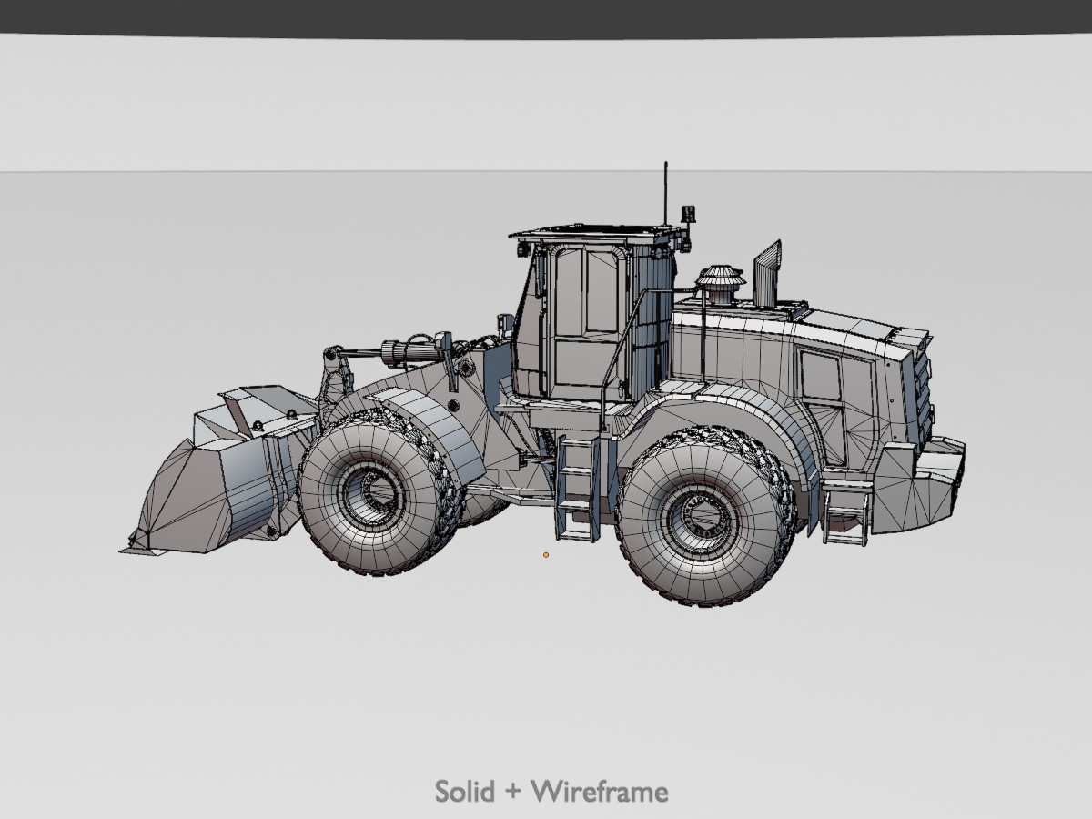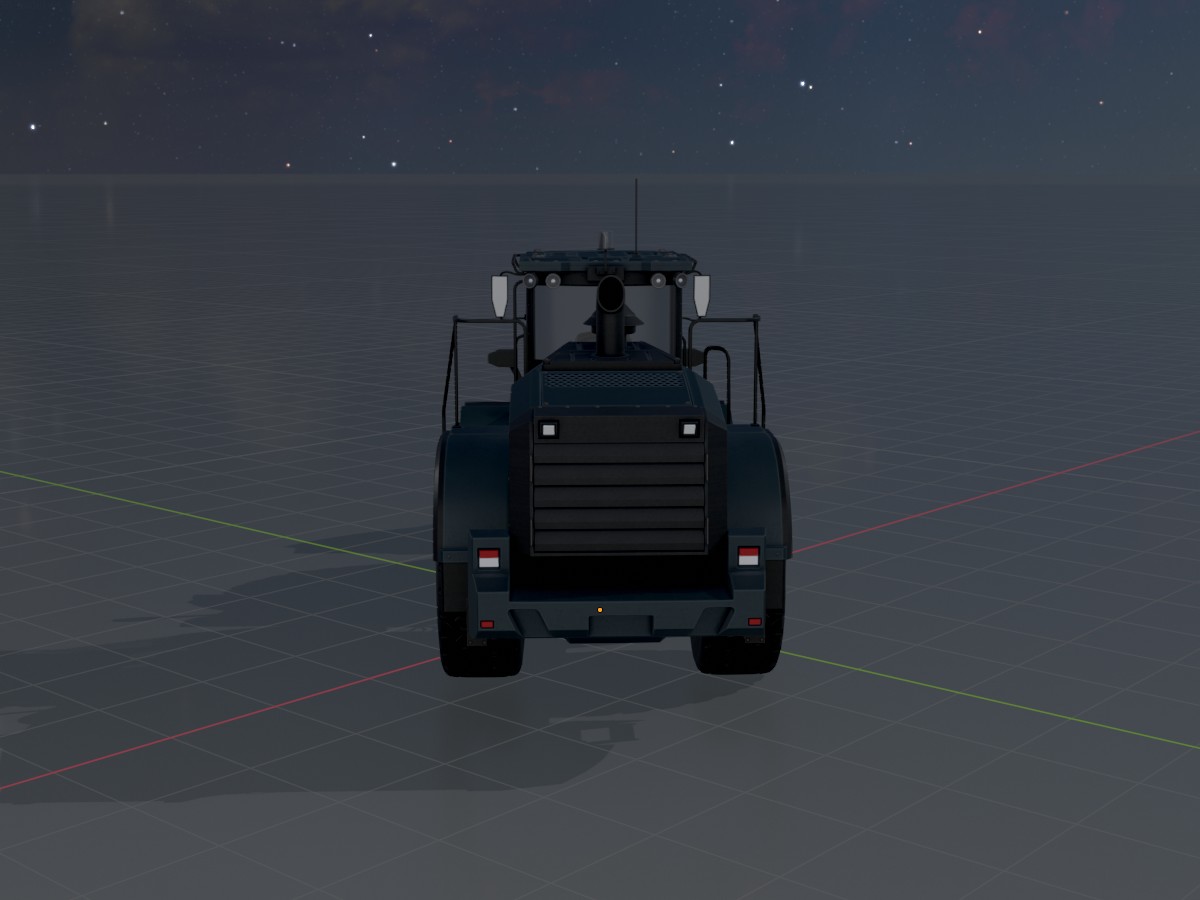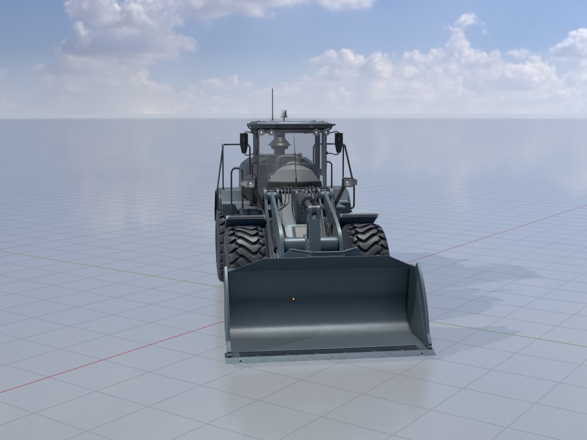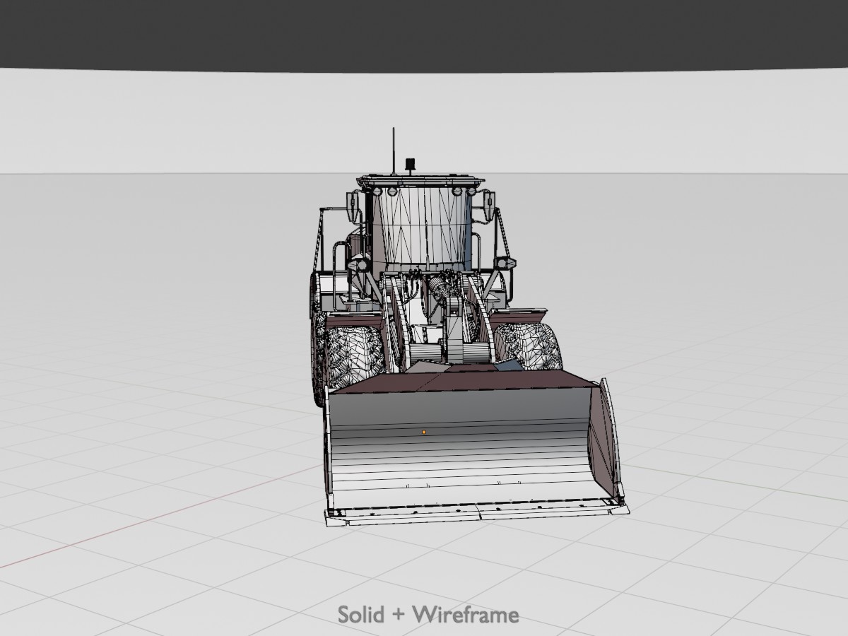 Ein 3D-Modell eines Baustellenfahrzeugs vom Typ Radlader (Frontlader).