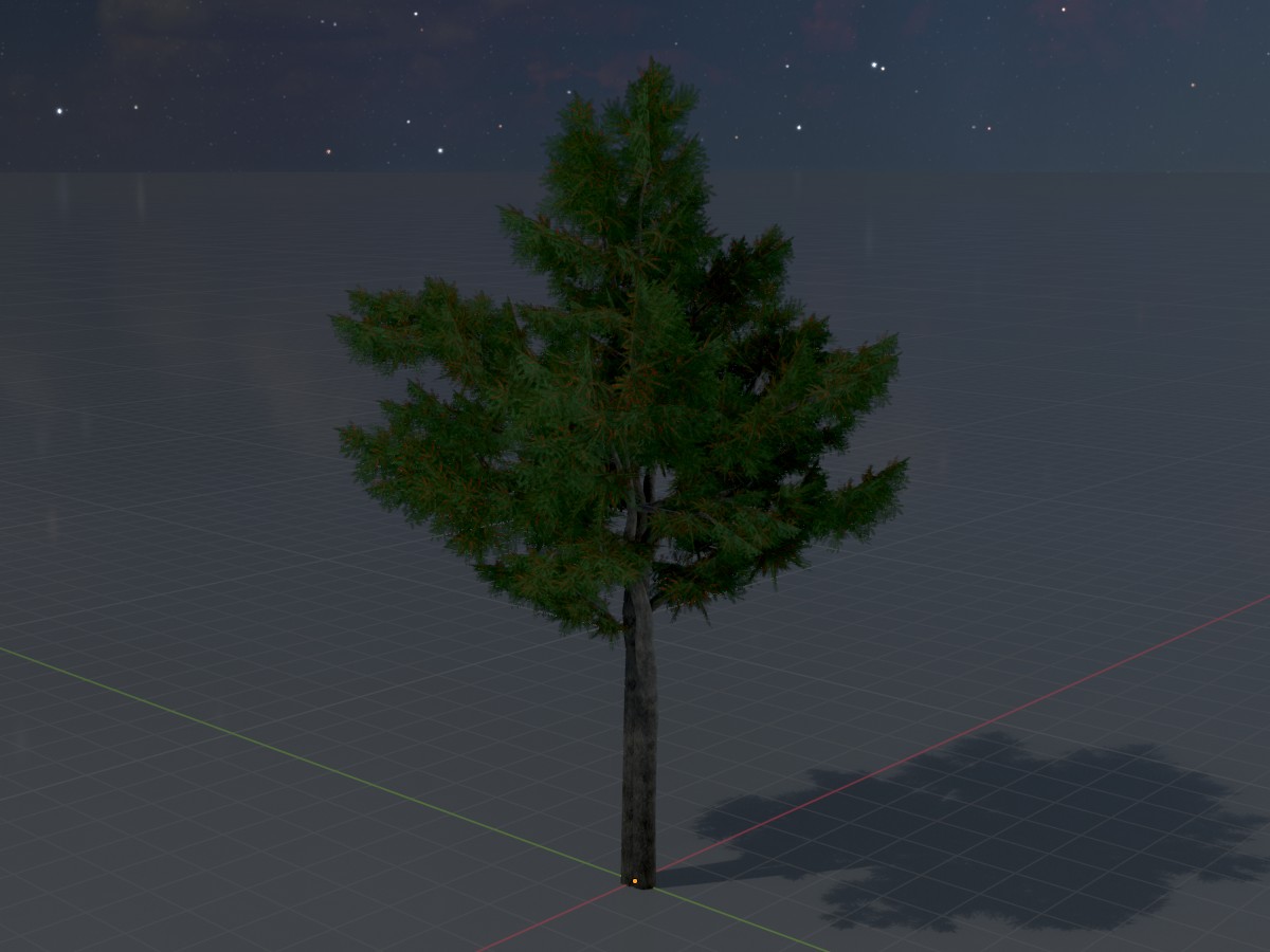 Um das Einfügen des Modells in eine 3D-Szene so einfach wie möglich zu gestalten, wurde der Einfügepunkt des Objekts an der Wurzel des Baumes gewählt.