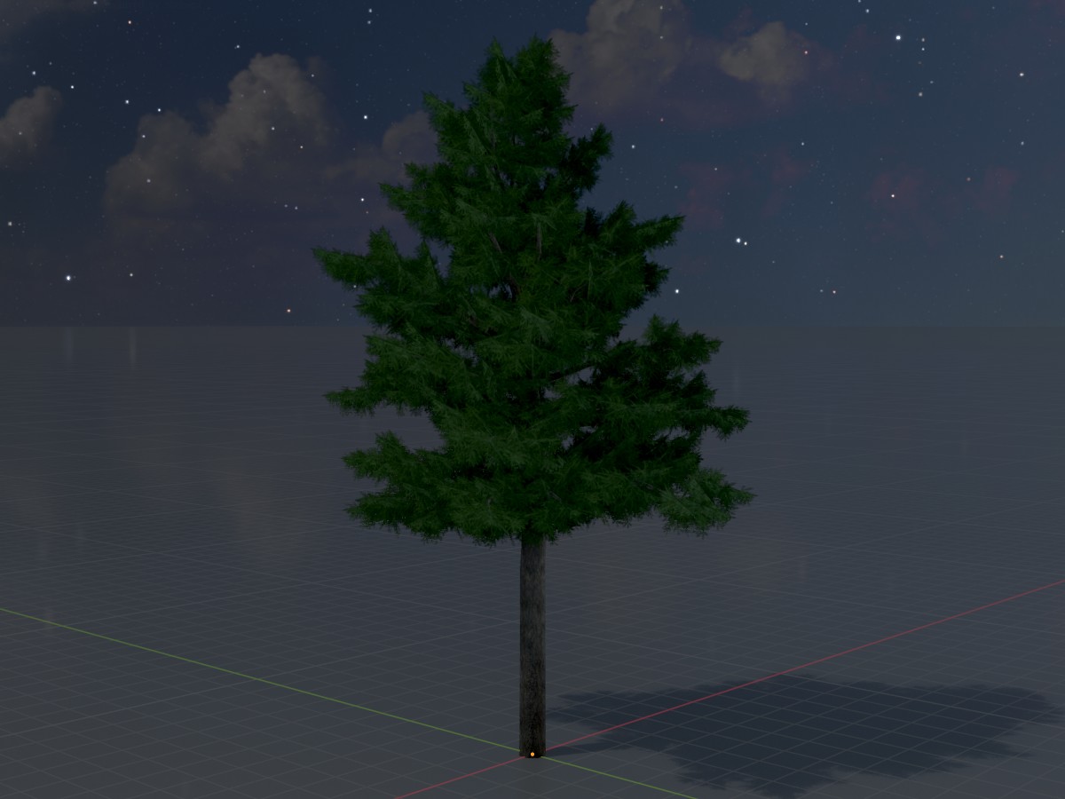 Um das Einfügen des Modells in eine 3D-Szene so einfach wie möglich zu gestalten, wurde der Einfügepunkt des Objekts an der Wurzel des Baumes gewählt.