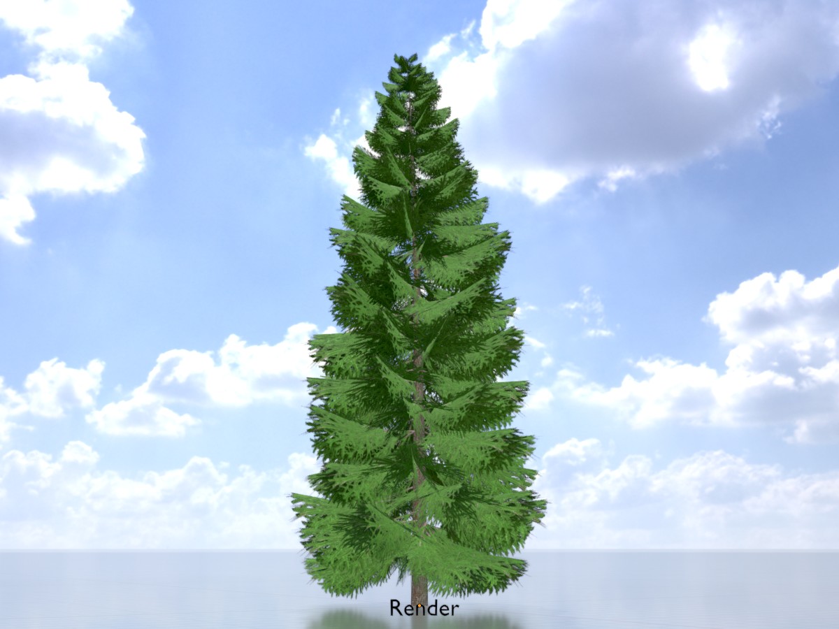 Hier sehen Sie ein 3D-Modell einer solitären Fichte im Sommer.