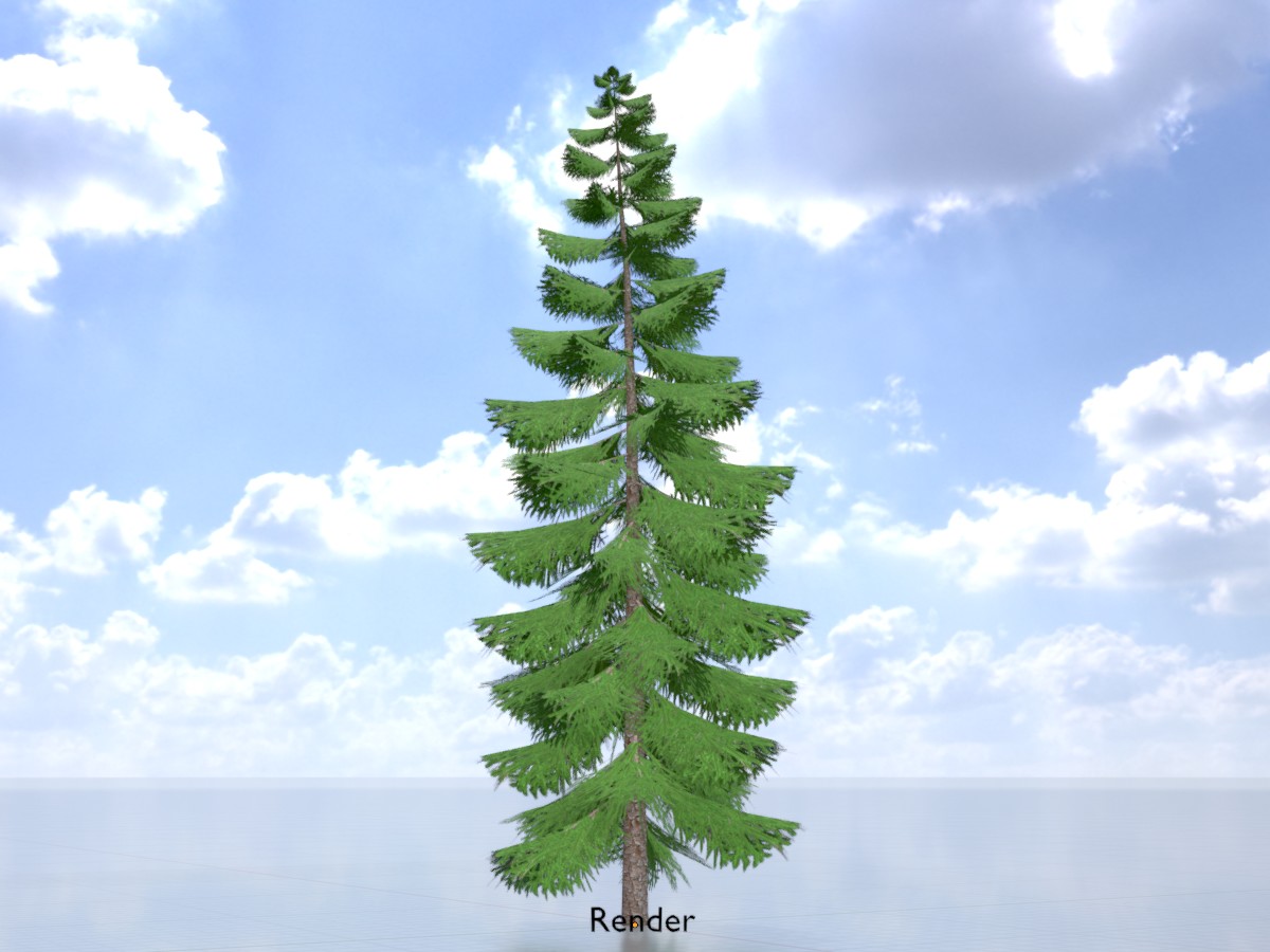 Hier sehen Sie ein 3D-Modell einer solitären Fichte im Sommer Version-1.