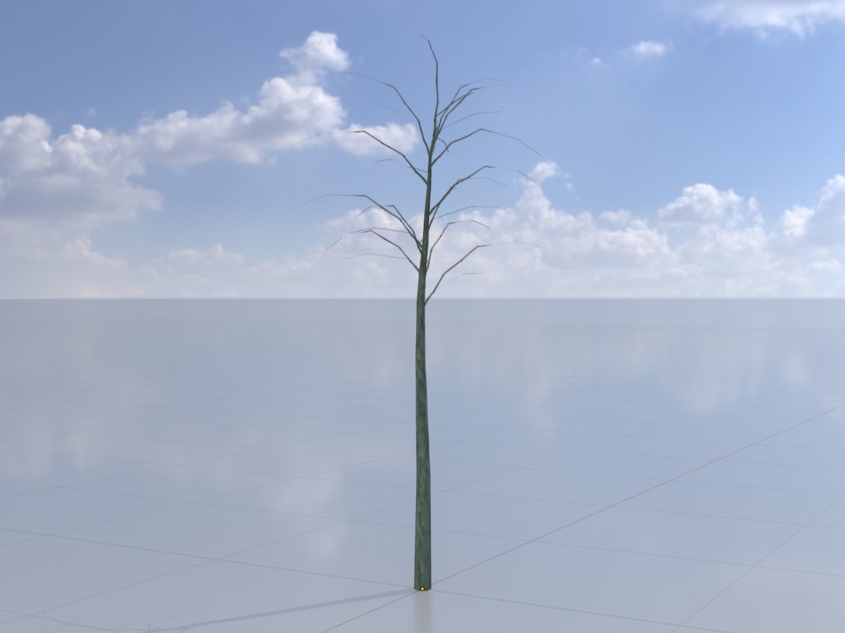 Um das Einfügen des Modells in eine 3D-Szene so einfach wie möglich zu gestalten, wurde der Einfügepunkt des Objekts an der Wurzel des Baumes gewählt.