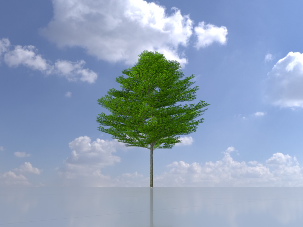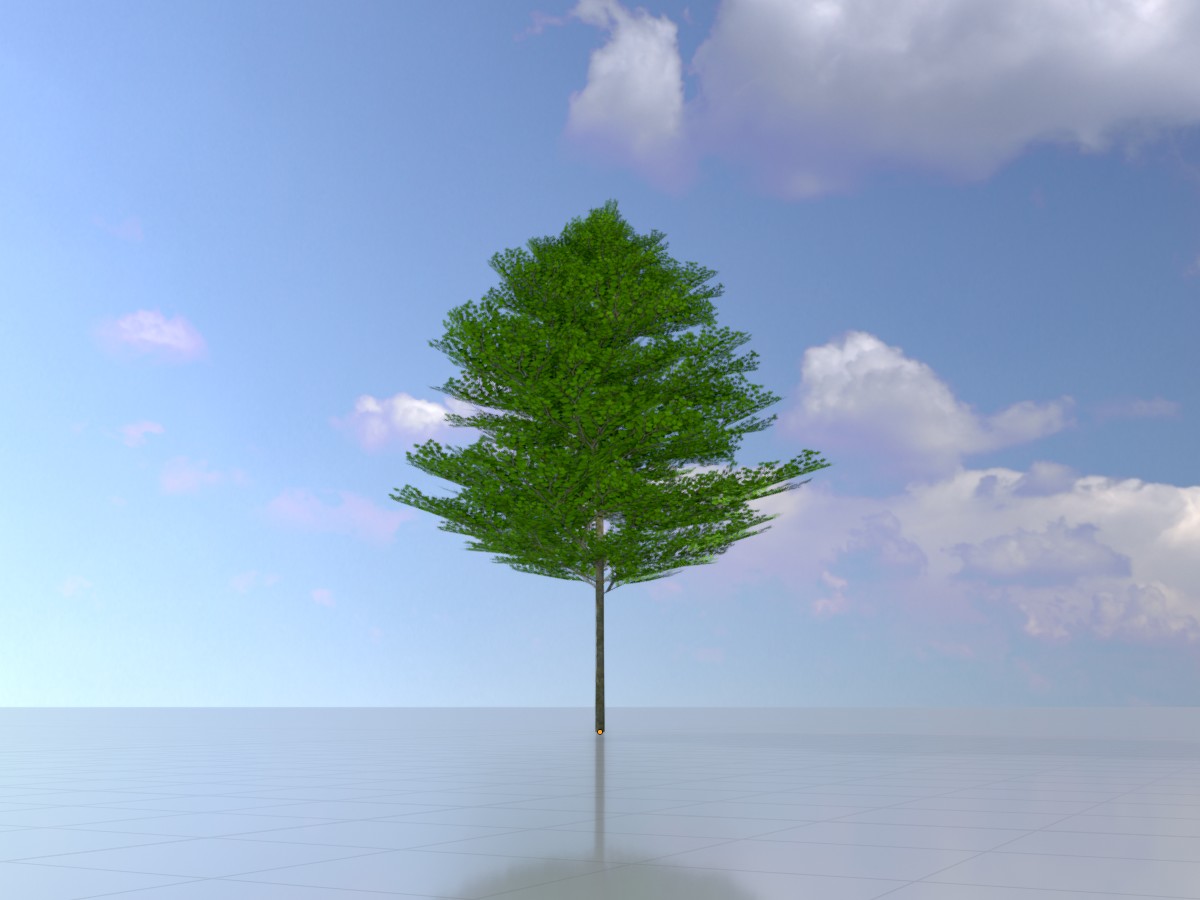 Hier sehen Sie ein 3D-Modell eines Platanenbaums im Sommer.