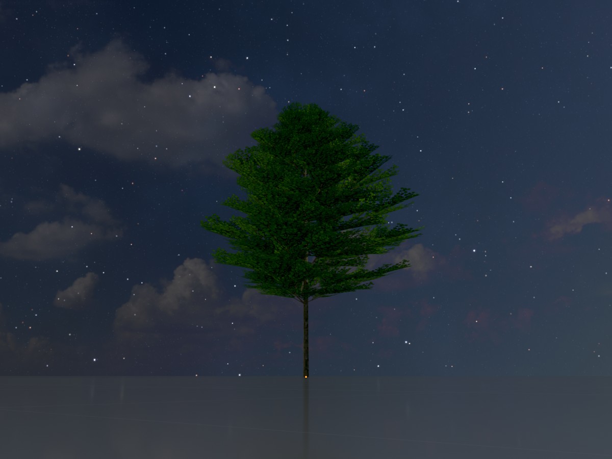 Um das Einfügen des Modells in eine 3D-Szene so einfach wie möglich zu gestalten, wurde der Einfügepunkt des Objekts an der Wurzel des Baumes gewählt.