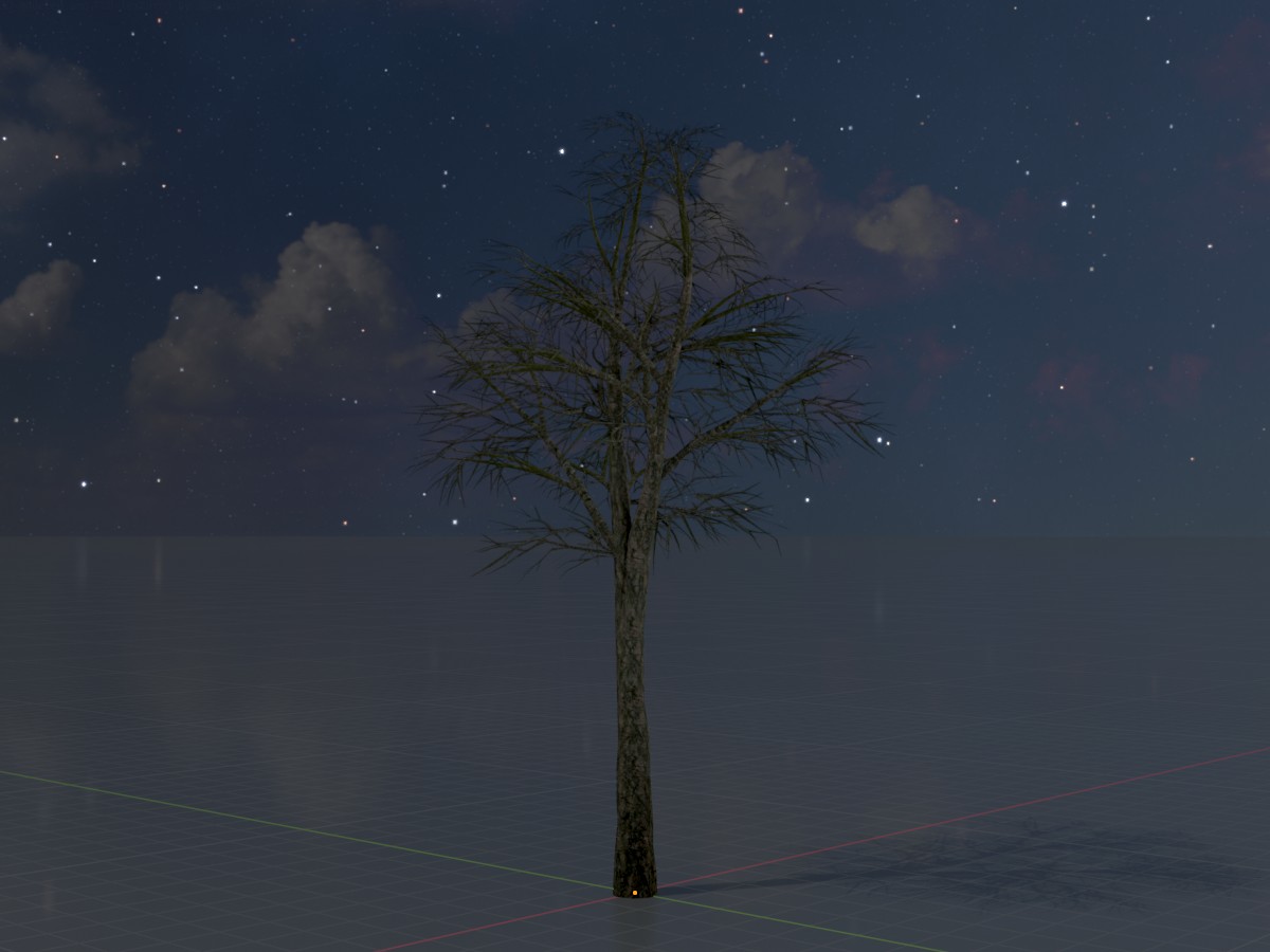 Um das Einfügen des Modells in eine 3D-Szene so einfach wie möglich zu gestalten, wurde der Einfügepunkt des Objekts an der Wurzel des Baumes gewählt.