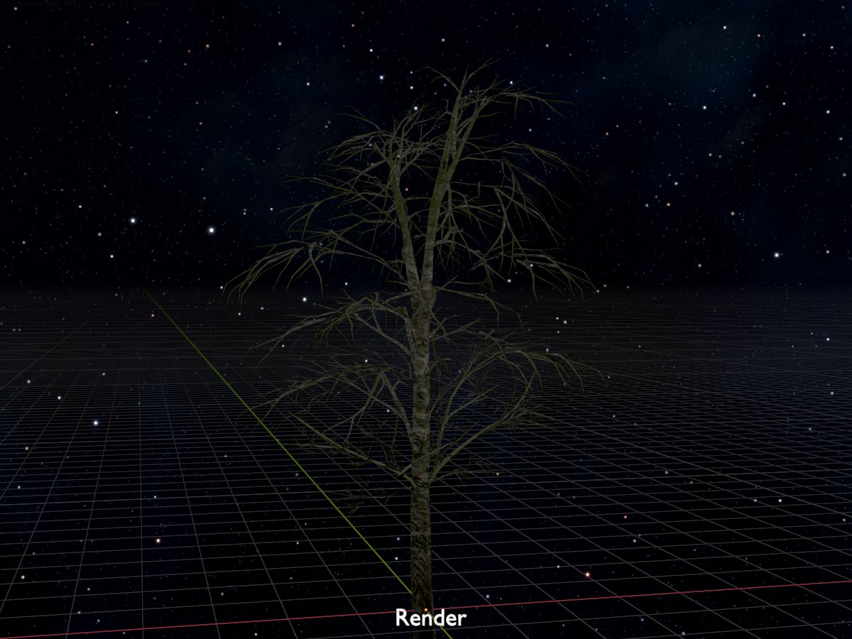 Um das Einfügen des Modells in eine 3D-Szene so einfach wie möglich zu gestalten, wurde der Einfügepunkt des Objekts an der Wurzel des Baumes gewählt.