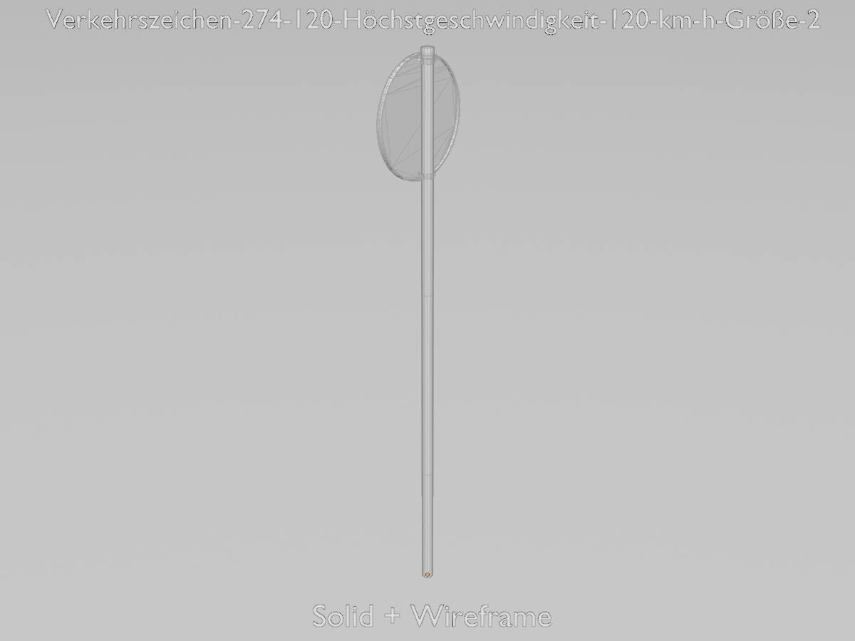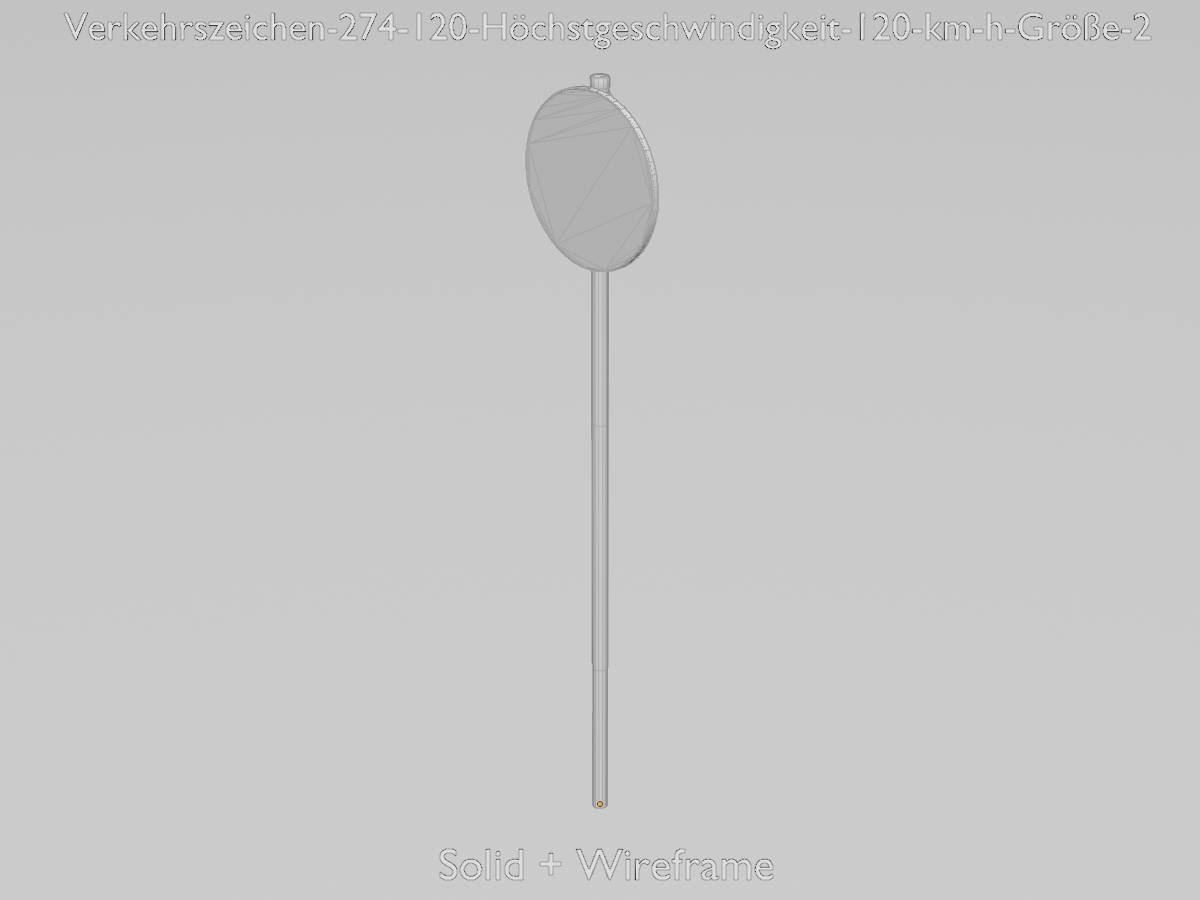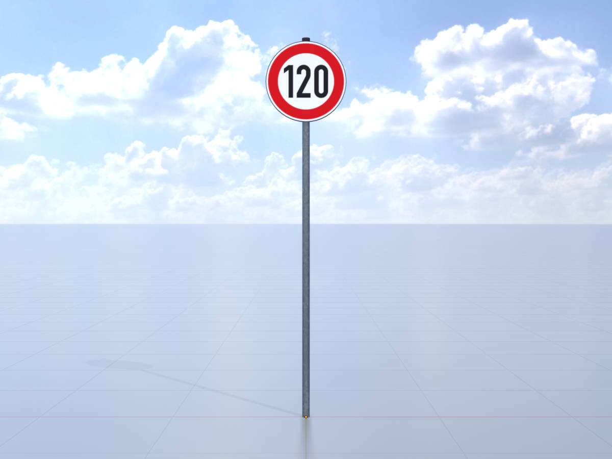 Hier sehen Sie ein 3D-Modell des Verkehrszeichens 274-120 Höchstgeschwindigkeit 120 km/h in Größe 2, das der Realität entsprechend texturiert und modelliert wurde.